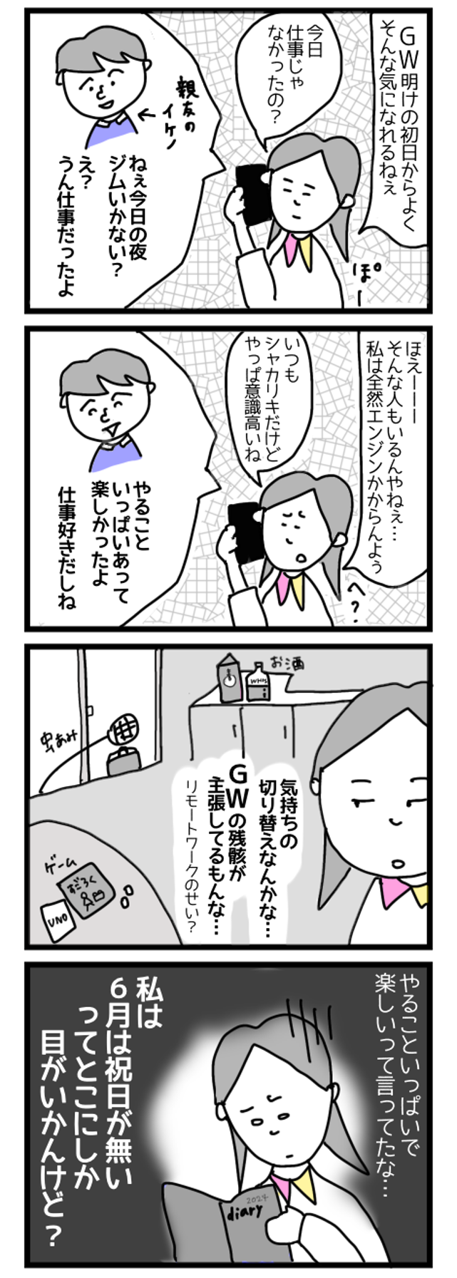 2024年05月08日 GW明けのシャカリキどう考えても無理 親友のイケノ初登場GW明けの仕事 皆さんいかがお過ごでしょうかもちろん祝日がお仕事って人もたくさんいるだろうけど連休明けの気持ちの切り替え問題私の場合 ダルイとかヤル気せんってゆーよりGWを思い返してセンチメンタルになって抜け出せないタイプサクちゃん魚捕まえて嬉しそうだったな~とか家族ですごろくできるなんてもう無いかもな~とかGWを想い…GWが愛しくて…で、6月に期待すると心折れる